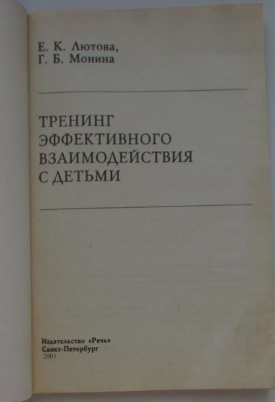 Тренинг эффективного взаимодействия с детьми. Лютова Е. К., Монина Г. Б. Санкт-Петербург. Речь. 2003 г.