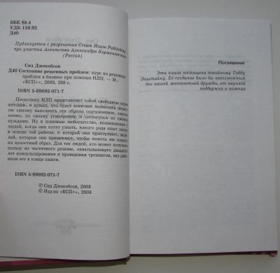 Состояние решенных проблем. Курс по решению проблем в бизнесе при помощи НЛП. Джекобсон Сид. Библиотека NLP. Москва. КСП+. 2003 г.